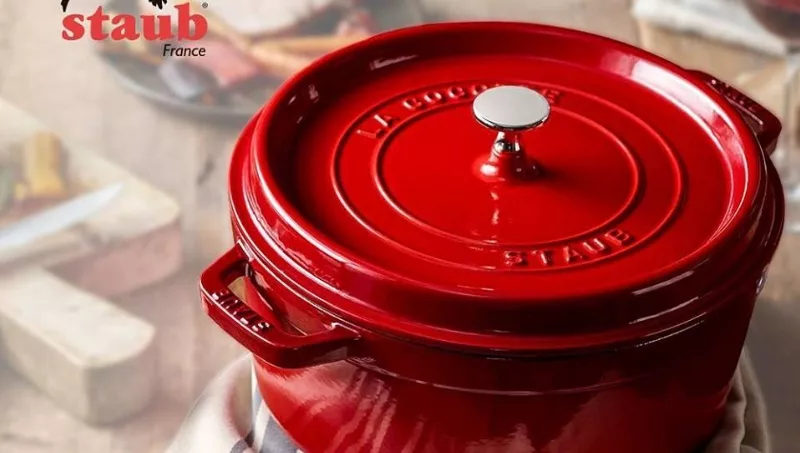 Ollas de Staub: este recipiente de gran capacidad, de poca altura y ancho, incluye una tapa y cuenta con dos agarraderas a los lados. Su utilización es versátil, prácticamente para cualquier preparado que contenga líquidos. Estas ollas de origen francés son de hierro fundido y esmalte con pigmentos naturales.