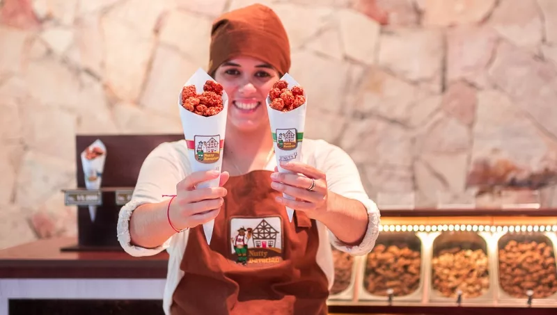 Fundada en 1989, en Estados Unidos, The Nutty Bavarian es la mayor red de frutos secos glaseados del mundo. Cuenta con más de 900 puntos de venta distribuidos en diferentes países.