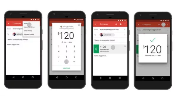 Para enviar dinero cuando se está escribiendo un mensaje en la aplicación para Gmail, el usuario debe pulsar el ícono Adjuntar y elegir la opción Enviar Dinero. Una vez que haya ingresado la cantidad que desea enviar, debe seleccionar la fuente para el pago e ingresar los datos. A partir de ahí, el mismo Google se encarga de hacer la transferencia.
