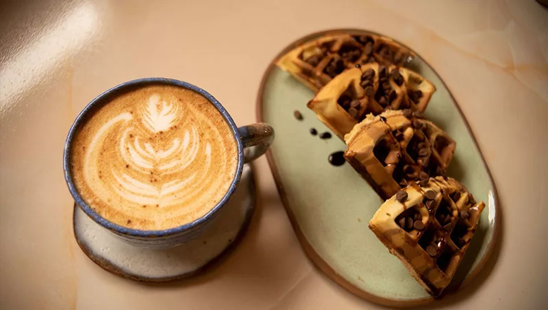 Acompañar el café es casi un ritual, croissants dulces (dulce de leche, guayaba, jamón y queso), versiones saladas como el croissant caprese o el americano (con huevo revuelto, panceta y muzzarella), waffles personalizables con frutas, miel o leche condensada, y los clásicos belgas (tradicional y caprese), que son un éxito entre quienes buscan un combo de sabor y textura.