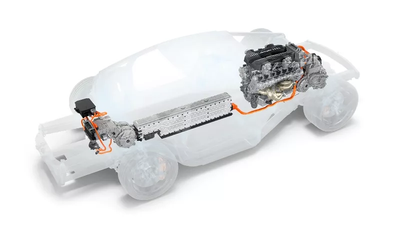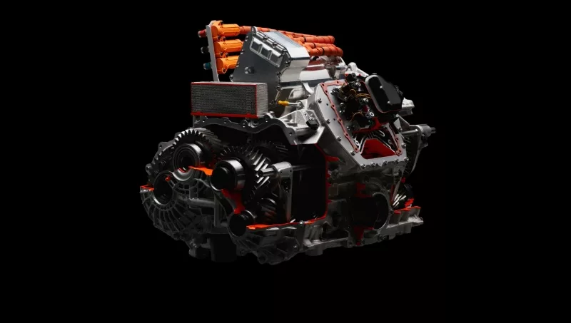 Cuenta con un tercer motor eléctrico sobre la caja de cambios de doble embrague de ocho velocidades que puede suministrar energía a las ruedas traseras. Por último, los dos motores eléctricos delanteros son unidades de flujo axial refrigeradas por aceite y ofrecen una relación peso/potencia de 18,5 kilogramos por cada 110 kW de cada motor.