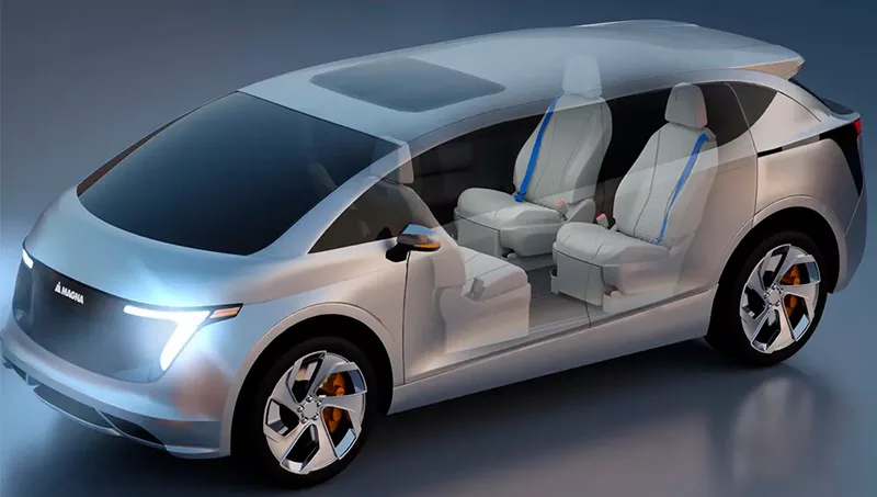 Este innovador diseño ha llevado a integrar los cinturones de seguridad en los propios asientos, eliminándolos de los pilares centrales del chasis, mejorando así los requisitos de fuerza y tensión en caso de accidente. Además, se ha desarrollado una plataforma magnética universal para el respaldo de los asientos, permitiendo conectar diferentes dispositivos de infoentretenimiento.