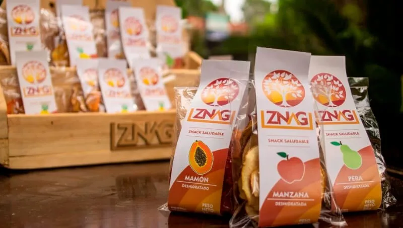 En el año 2016, Lena Martínez Missen –encargada de la gerencia general y el área comercial– y su esposo, Marcos Caballero (que tiene a su cargo el soporte técnico de las instalaciones y equipos), pusieron en marcha Znag, unas frutas deshidratadas sin agregado de colorantes, conservantes ni azúcar y libre de gluten.