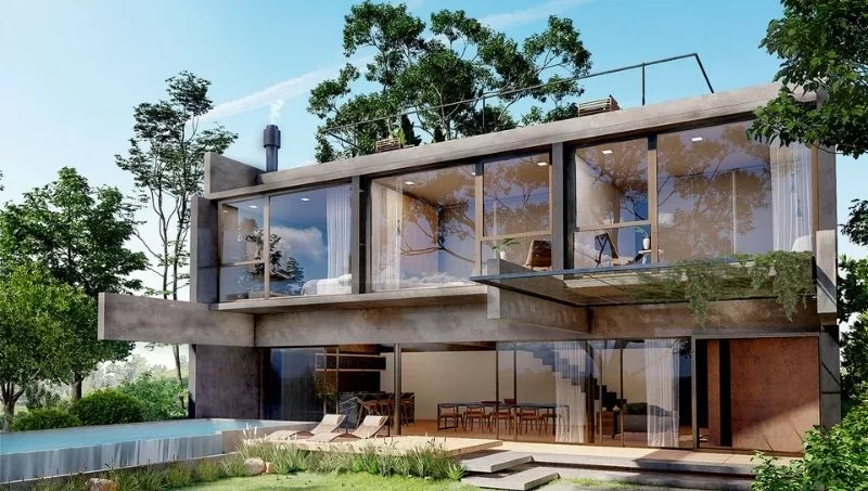 La casa modelo destina 389 m2 a la construcción, en un terreno de 616,5 m2, con el fin de preservar espacios verdes y naturales. Además, al estar ubicado en una altura, esta tipología ofrece las mejores vistas y puestas de sol a sus residentes.