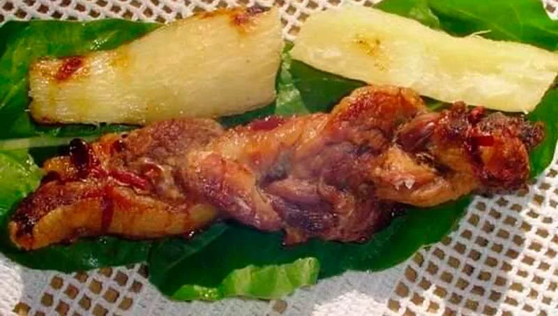 En cuanto a la gastronomía presentada es enteramente tradicional y comprende comidas típicas como el chipa asador, chipa manduvi, chipa mestizo y el chipa aramiro, sopa paraguaya, luego están platos como el vori vori de gallina casera, tallarín, asado a la estaca, y comidas rápidas como el payagua mascada, pastel mandi’o, chicharo trenzado, chicharo hu’iti, entre otros alimentos tradicionales del menú paraguayo.