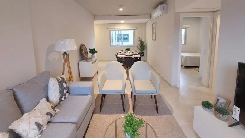 “El edificio consta de nueve pisos y 100 departamentos. La obra ya se encuentra terminada, se están realizando las entregas de llaves a los nuevos propietarios. A la fecha, nos quedan aún algunas unidades de dos dormitorios disponibles para la venta”, informó Villalón. “Las unidades de dos dormitorios van desde US$ 131.240. Contamos con financiación propia y bancaria”, agregó.
