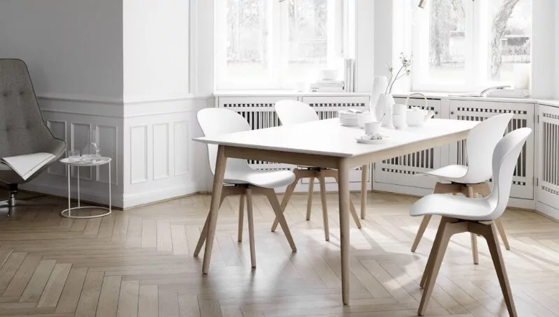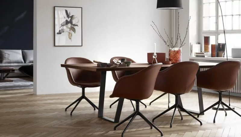 “En cuanto al amoblamiento, hemos incluido muebles específicos para cada sector. En la oficina de reunión se destaca la mesa Vancouver. Su tablero de madera maciza introduce la naturaleza en la mesa de reunión y las elegantes patas metálicas inundan de luz. En el departamento hemos puesto la mesa de comedor Milano con los bordes del tablero perfectamente rectos, que acentúan la expresión geométrica que define esta moderna mesa. Al mismo tiempo, sus esbeltas patas de madera completan el estilo escandinavo”, describió Abel Ramírez, consultor de diseño y el encargado de diseñar la propuesta.