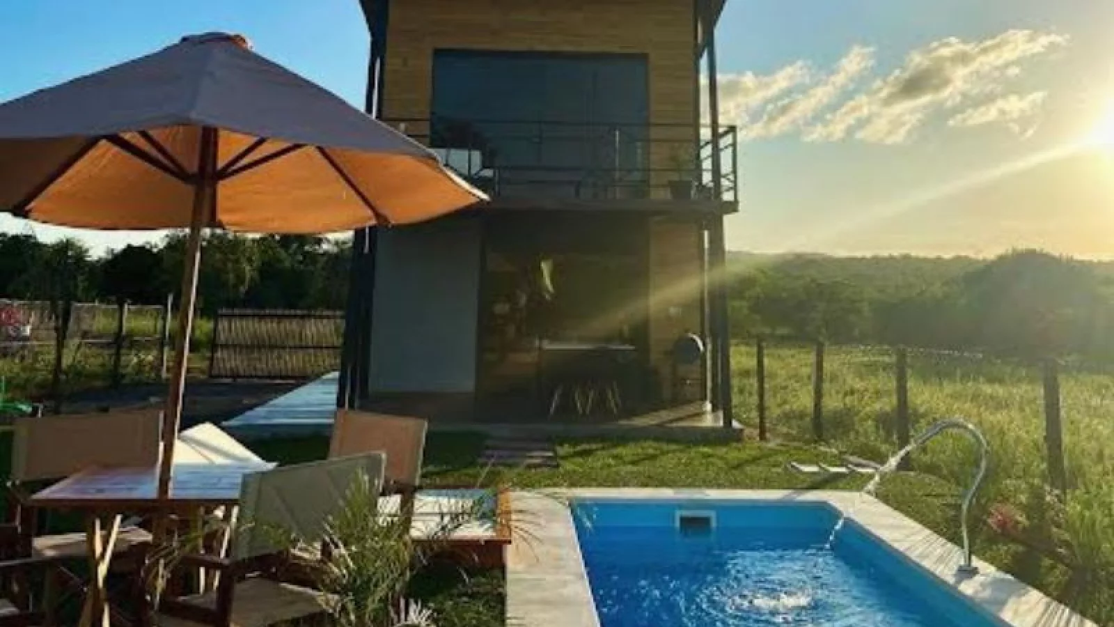 La cabaña tiene dos niveles y una terraza en la planta alta. El predio es completamente privado y tiene una superficie de 432 m2. “Combinamos la naturaleza con el confort para que sea una escapada completamente satisfactoria. La cabaña cuenta con una cocina totalmente equipada, acondicionadores de aire, wifi, proyector de 120”, habitación matrimonial, piscina, parrilla, área de fogonero y estacionamiento”, prosiguió.