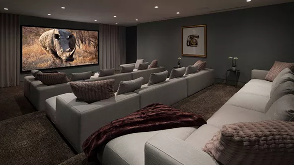 Lo ideal es instalar el cine en un lugar que no moleste a los demás miembros de la familia que estén en otra estancia de la casa. De ser posible puede estar en un lugar alejado para poder combinar este espacio con otras actividades; tal vez una sala de juego o un pequeño bar.