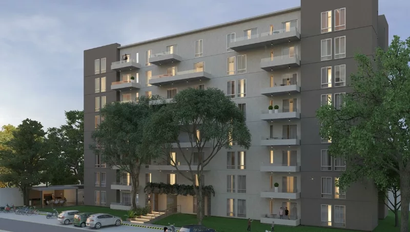 Cada bloque de ocho niveles tendrá siete departamentos, provistos de cocheras en planta baja y quinchos con parrilla de uso múltiple para residentes. Las unidades poseen vistas al exterior, luz y ventilación naturales, placares y muebles de cocina, portero eléctrico y seguridad, ascensores, generadores y aberturas de aluminio.