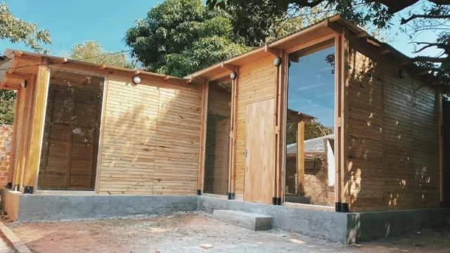 Como lo mencionamos, La Fábrica Social propone viviendas de estilo americano desde G. 29, 38 y 45 millones. La primera de 18 m2 con habitación matrimonial, baño y cocina; la segunda de 29 m2 con habitación matrimonial, baño, y cocina-comedor; y la tercera de 40 m2 con dos habitaciones, baño y cocina-comedor. Las mismas presentan cimientos de hormigón, paredes de fibrocemento, así como techo de chapa con cielo raso. Además, se pueden agregar vidrios templados -más conocidos como blindex- y piso vinílico o porcelanato. El maderamen sostiene la estructura y puede ser revestido interiormente con fibrocemento y pintado como terminación.
