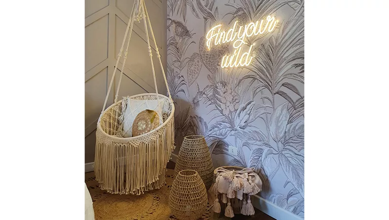 Esta marca ofrece todo lo que uno se pueda imaginar, siempre y cuando tenga que ver con el macramé; desde porta planteras (que fue el inicio de este emprendimiento) hasta muebles como cunas para bebés, sillas y hamacas, cuadros, accesorios de decoración, lámparas y todo lo que tanto este arte antiguo como la creatividad permitan hacer.