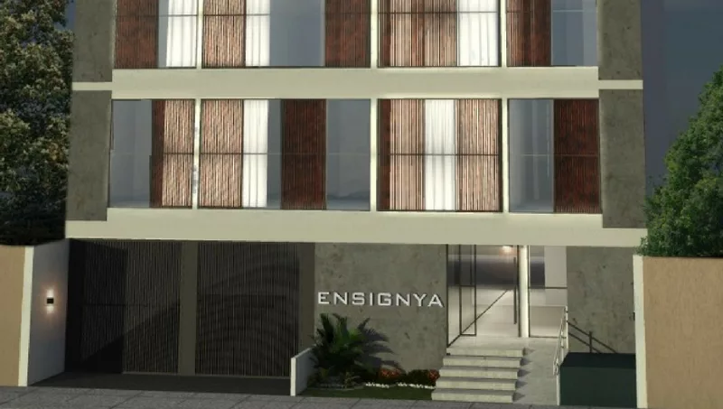 Ensignya es un edificio de 10 niveles, ubicado en un área de 321,44 m², que consta de 13 estacionamientos distribuidos entre el subsuelo y la planta baja; y 10 bauleras, todas ellas en la planta sótano.