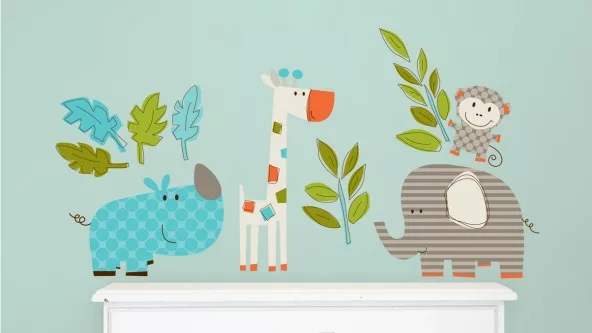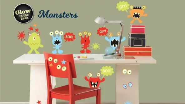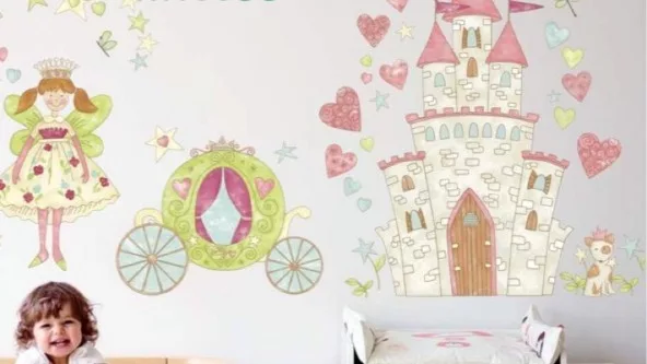 Y que incluye calcomanías para la pared, con motivos para niñas como princesas, castillos, pajaritos, mariposas; motivos para niños, como dinosaurios, animales, medios de transporte, monstruitos que brillan en la oscuridad; y también motivos para adultos, así como mapamundis y calendarios, encima de los cuales se puede escribir y luego borrar.