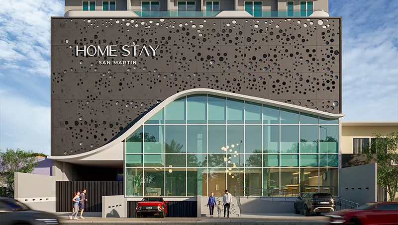 Home Stay San Martín ofrece amenities de alto nivel, que lo alinean a los mejores estándares internacionales: lobby con sala de espera, cafetería con espacio de coworking, piscina y solárium, gimnasio equipado, quinchos con parrilla y un bar temático en el rooftop. “Todo está pensado para brindar una experiencia completa y funcional, adaptada al estilo de vida de ejecutivos, viajeros frecuentes y profesionales en tránsito”, añadió.