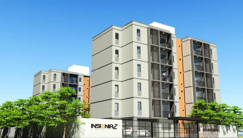 Insignia 2 es un emprendimiento de 3.478 m2 en un predio de 1.800 m2, posee 44 departamentos de dos dormitorios de 60 m2 y de tres dormitorios de 71 m2, distribuidos en dos bloques de seis niveles. “Actualmente se vendieron 30% de las unidades con apenas dos meses de inicio de las obras”, confirmó Angulo.