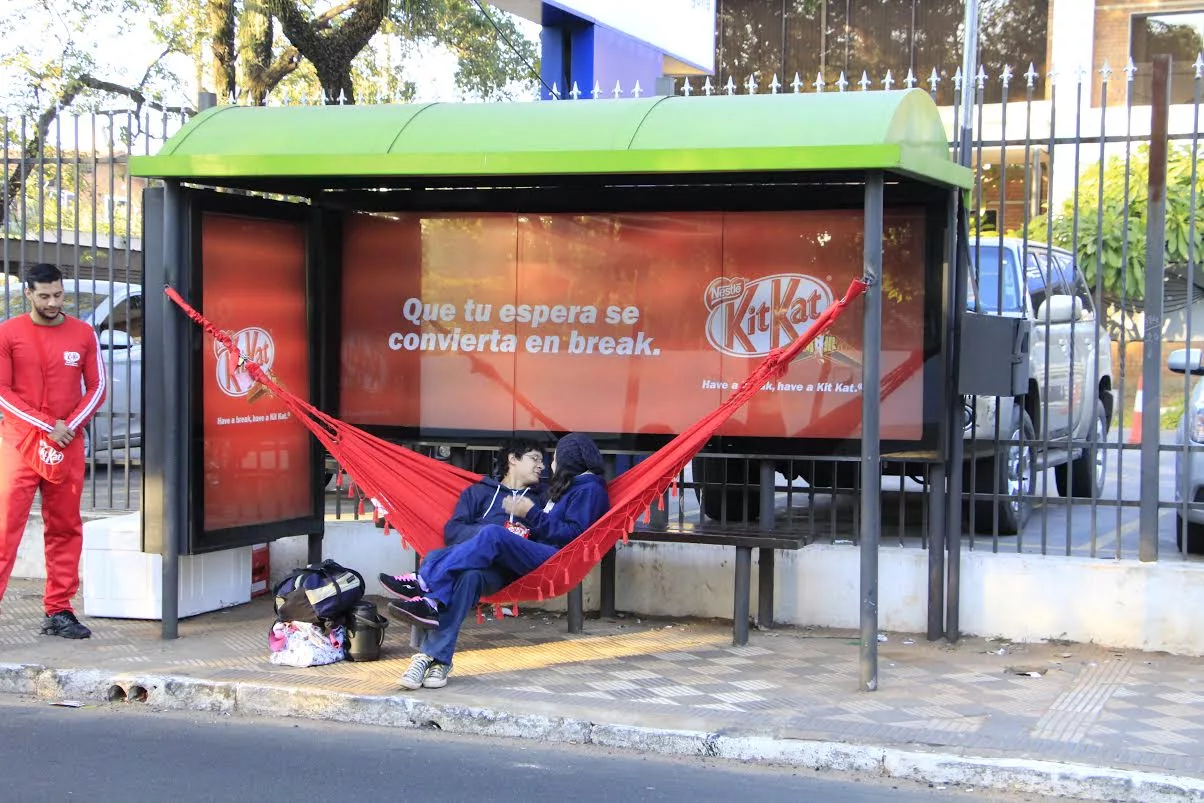 “Que tu espera se convierta en un BREAK”, con este mensaje la conocida marca de chocolates KitKat dejó su sello en cada una de las paradas, buscando llevar su reconocido concepto “Have a Break, Have a KitKat” a un plano tangible y experiencial, contagiando el espíritu del “break” a las transitadas calles de las distintas ciudades de nuestro país.