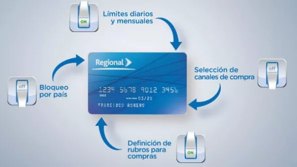 “Establecer límites de compras diarias y mensuales, bloqueo por país, seleccionar canales de compras y definir sus rubros son las nuevas facilidades que tienen disponible todos los clientes con la particularidad de poder asignar estos parámetros en línea, en cualquier momento y lugar desde la Regional Web”, explicó Emiliano Remonato, gerente de marketing de la entidad.