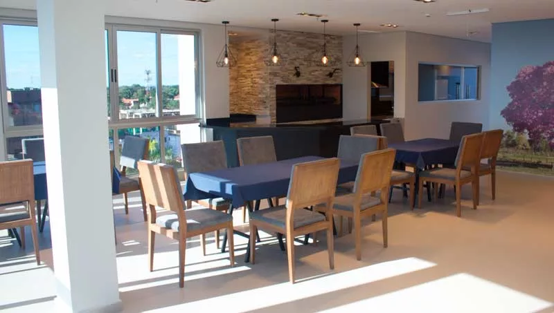 En el séptimo piso, Salto Carmelo Tower posee una terraza espectacular para uso exclusivo de sus inquilinos. “Allí ofrecemos un Salón de Eventos de 140 m2 climatizado donde cómodamente podrían sentarse a disfrutar de un almuerzo o cena hasta 42 personas o una reunión de negocios”, manifestó.