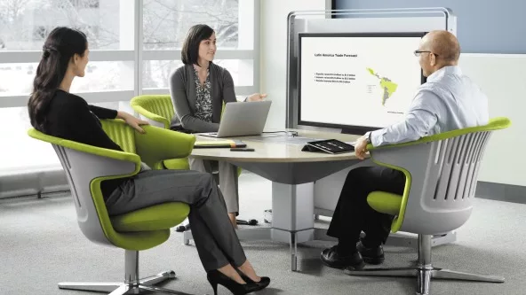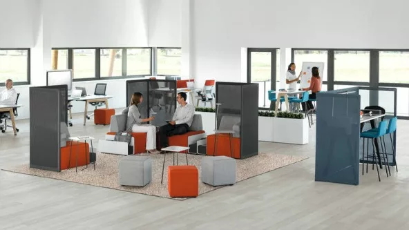 Steelcase entiende la necesidad de cuatro espacios diferentes en los que las personas se desarrollan en el marco laboral: uno que invite a la concentración; otro que propicie la colaboración, donde la gente se pueda reunir para resolver, planificar y desarrollar ideas; uno para el aprendizaje, que hoy día debe ser constante, y se trata de áreas en las que las personas con más experiencia puedan compartir su expertise con el resto; y por último, un espacio para la sociabilización, “aunque este último aún esté un poco mal visto”, según palabras del Sr. Franco, “está comprobado que de las áreas de sociabilización salen las mejores ideas de trabajo, se liman asperezas, etc. Hoy día la socialización es muy importante en una empresa, juega un papel clave”.