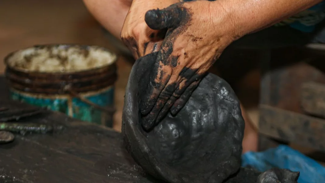 “El proceso del ñai’ũpo es largo y minucioso, comienza con la extracción del barro, continúa con la preparación de la arcilla, el amasado, el modelado y finalmente la cocción en hornos artesanales. Cada pieza puede requerir varios días de trabajo”, detalló Ña Vicenta.