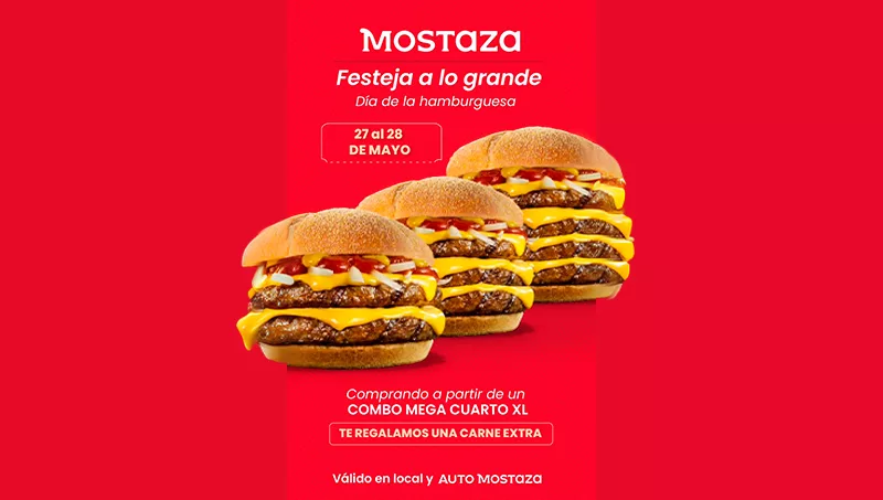Así que, duplica, triplica o cuadruplica tu hamburguesa y disfrutá de un día MAYUSCULO solo en Mostaza. ¿TE ANIMÁS?