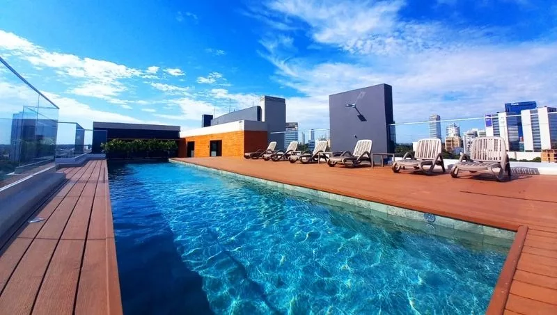 “Executive ofrece un alto grado de diseño ofreciendo la máxima confortabilidad en el espacio ideal y creando ambientes con buena ventilación e iluminación natural. Cuenta con una planta baja que alberga el lobby de acceso con seguridad 24 horas y el estacionamiento. Los amenities se distribuyen en una imponente terraza superior; una piscina de 12,5 metros de largo, con un deck de apoyo tipo solárium, quincho climatizado con parrilla, gimnasio equipado, con working, baños sexados y vestuarios para el personal de servicio de los departamentos, y como un plus le agregamos un mirador que ofrece una maravillosa vista 360 de la ciudad”, detalló Sandra Ortega, gerente comercial del Grupo Barcelona.