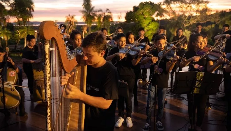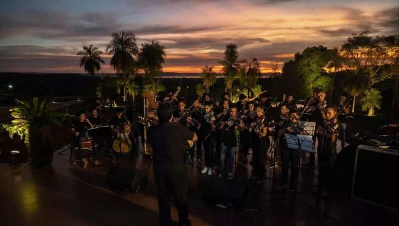 Esta cita regaló una vista inmejorable, la de un atardecer dorado con el emblemático Lago Ypacaraí de fondo, la frescura de la vegetación reinante y el imperdible concierto de la Orquesta de Instrumentos Reciclados de Cateura, que se ajusta al pacto de respeto al ecosistema que Serendipia mantiene desde sus inicios en los planos.