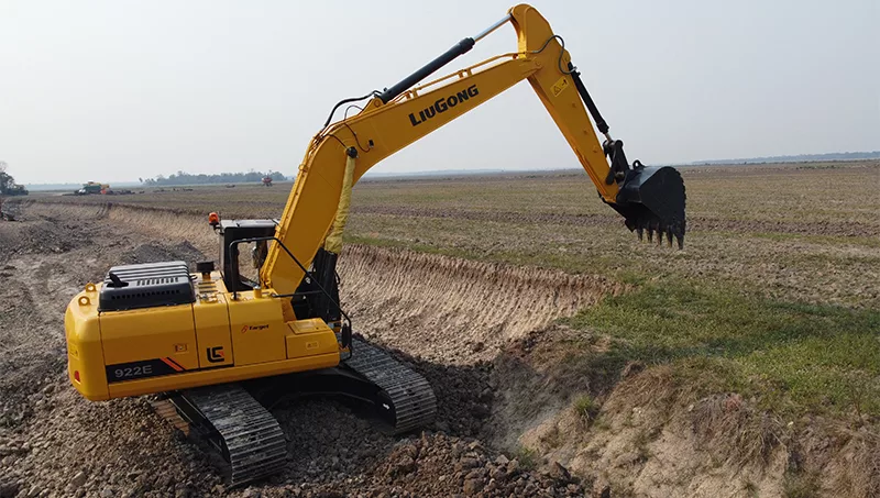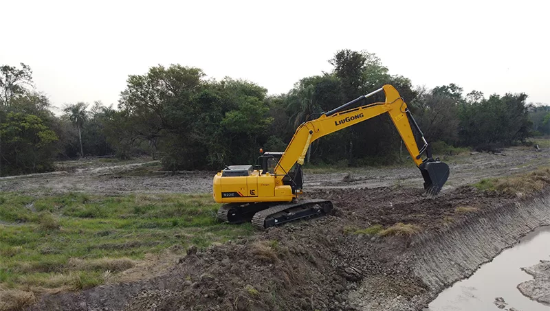 La excavadora LiuGong 922 E, la elegida para estos trabajos. desempeña un papel crucial en varias etapas del ciclo del cultivo de arroz. Una de sus principales aplicaciones es la preparación del terreno. Antes de la siembra, estas máquinas ayudan a nivelar el suelo, construir canales de riego y eliminar obstáculos, garantizando un campo listo para el cultivo.