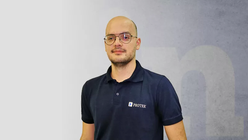 El área que lidera dentro de Protek no es menor: coordina la sinergia entre marketing, ventas y gestión comercial, y se apoya no solo en sus capacidades, sino en las de su equipo y en empresas hermanas como BlueRisk, especializada en master plans de seguridad. Esa cultura colaborativa genera un ecosistema de innovación donde cada especialidad aporta una mirada clave.