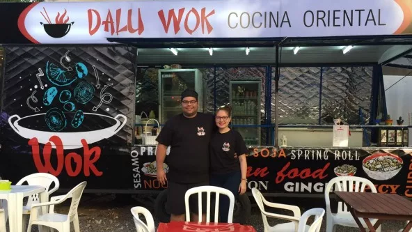 “Estamos actualmente en el Food Park de Asunción con Dalu Wok: cocina oriental, en el que servimos platos salteados al momento, con base de verduras, carnes maceradas, arroz al vapor, fideos de batata, fideos de arroz, de trigo, ramen, entre otros”, cuenta.