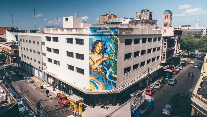 Este mural está ubicado en pleno centro de Asunción, en un espacio de 50m2, en donde se encuentra una de las seis tiendas de Juan Valdez en la ciudad. Es un regalo de la marca a la ciudad.