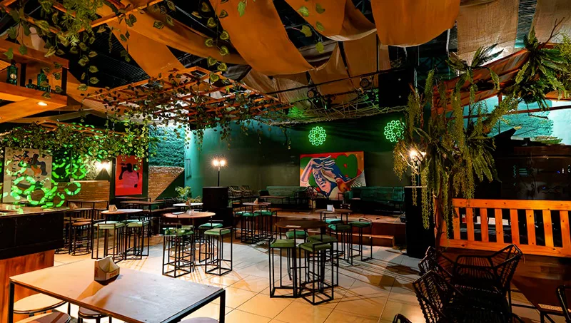El local cuenta con varias áreas diseñadas para diferentes tipos de experiencias. De lunes a miércoles, al frente se encuentra un espacio llamado "la planada" y una barra más pequeña, ideal para quienes buscan disfrutar de promociones after office. De jueves a sábado, se habilita un salón más amplio, equipado con sofás cómodos para grupos de hasta 15 personas y mesas altas para grupos más pequeños de cuatro personas, ofreciendo así un ambiente versátil. El ambiente habitual que se respira en un bar-pub que tiene su cocina abierta y en el que también se organizan fiestas con DJ y grupos en vivo.