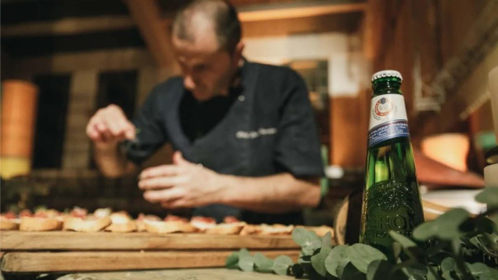 El menú estuvo elaborado por el chef español José Torrijos, quien eligió platos de la cocina italiana para maridarlos con Peroni. La entrada consistió en una bruschetta di pomodoro fresco, seguida de carpaccio tradizionale.