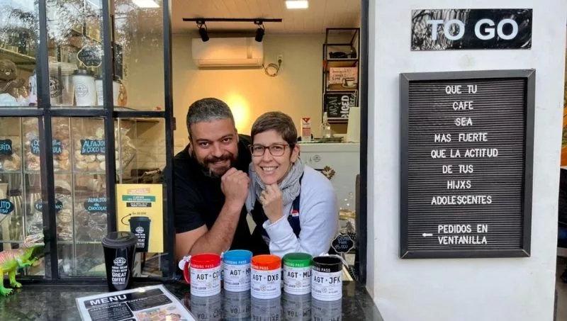 Travelers no cuenta con cocina. “Justamente con la pandemia vimos muchas empresas cerrar, empresas con productos deliciosos, que no pudieron seguir con su negocio. Entonces decidimos ceder nuestro local como punto de venta para ellos”, dijo Everton. “Pasamos un buen tiempo probando varios productos hasta llegar a las mejores combinaciones para nuestros cafés”, aclaró.