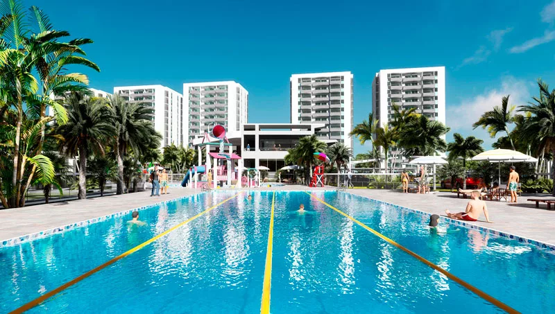 El conjunto está conformado por edificios residenciales, rodeados de áreas verdes y recreacionales como piscinas de nado e infantiles, canchas deportivas, quinchos y una casa club con salas de eventos, plaza, gimnasio, salas de juego, entre otros. Una propuesta diseñada en función de las aspiraciones del paraguayo y orientada a mejorar el día a día de sus propietarios.