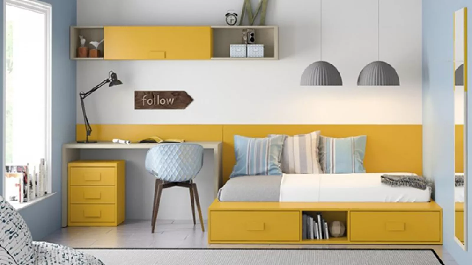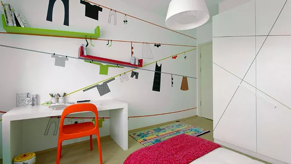 Convertí una zona de estudio aburrida en un lugar moderno y divertido. Los escritorios integrados son los que se colocan junto a la cama o el armario ya que todos los muebles pertenecen a un mismo módulo, que de hecho permite ahorrar una gran cantidad de espacio dentro de la habitación. Es ideal para aquellas familias que viven en departamentos.