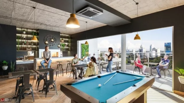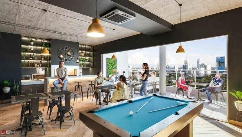Tanto los departamentos como los amenities y áreas comunes están diseñados para optimizar espacios y brindar la mejor experiencia posible al cliente final. “Buscamos innovar constantemente en la búsqueda de la perfección”, dijo Guasti. El edificio posee departamentos de una y dos habitaciones, seis niveles de cocheras y amenities como piscina, quinchos climatizados, rooftop, laundry, day care infantil y otros entretenimientos.