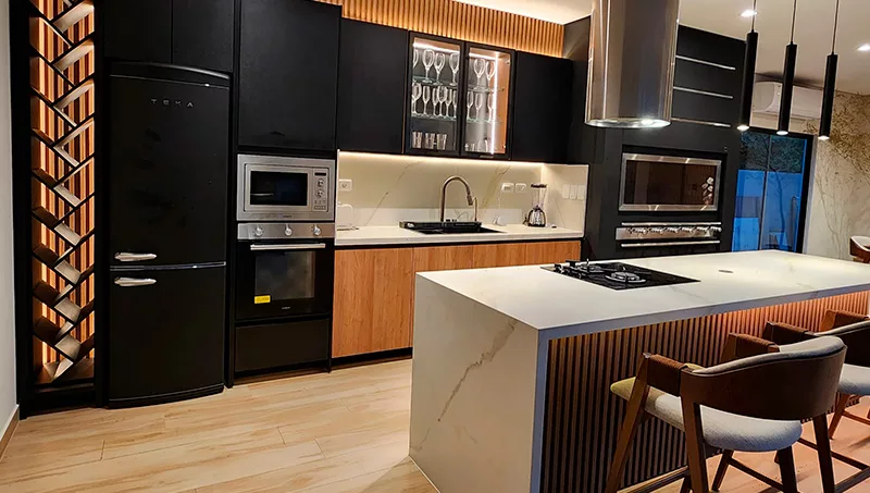 A la hora de trabajar, lo primero es una visita técnica, para luego presentar el modelo del proyecto en 3D, con la posibilidad de ir colaborando con el cliente durante el proceso. “Con asesoramiento y guía de nuestro equipo de profesionales, cada cliente se beneficia de un enfoque integral”, especificó la propietaria. Las cocinas y los quinchos personalizados, así como los espacios integrados son los productos más solicitados.