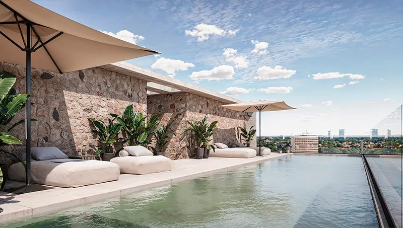 Artemio combina la comodidad y la flexibilidad de un condominio con los servicios y los amenities de un hotel. El proyecto cuenta con 42 departamentos totalmente equipados, distribuidos en ocho pisos, con unidades de un dormitorio de diseño moderno. Además, ofrece un rooftop con amenities exclusivos que incluyen restaurante, piscina, solarium, gimnasio, spa y jacuzzi.