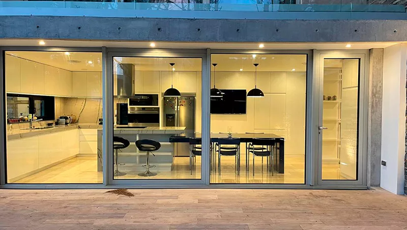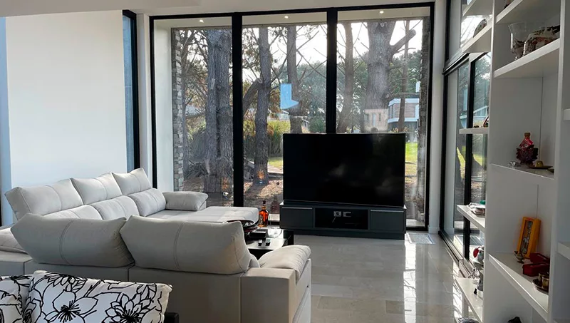 El diseño de estas viviendas comienza con un aislamiento térmico adecuado. Materiales como la celulosa proyectada o el poliestireno expandido garantizan que las temperaturas internas se mantengan estables, incluso durante las olas de calor. Otro factor fundamental es la eliminación de los puentes térmicos, puntos por donde el calor o el frío pueden infiltrarse, lo que además previene problemas como la aparición de moho o daños en las paredes. Las carpinterías de alta eficiencia, con vidrios dobles o triples y cámaras rellenas de gas argón, son esenciales para minimizar las pérdidas de energía y asegurar un buen desempeño térmico.