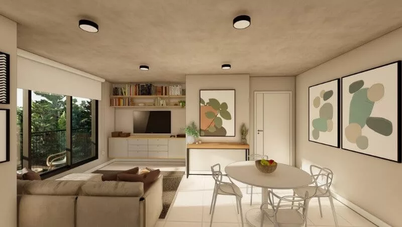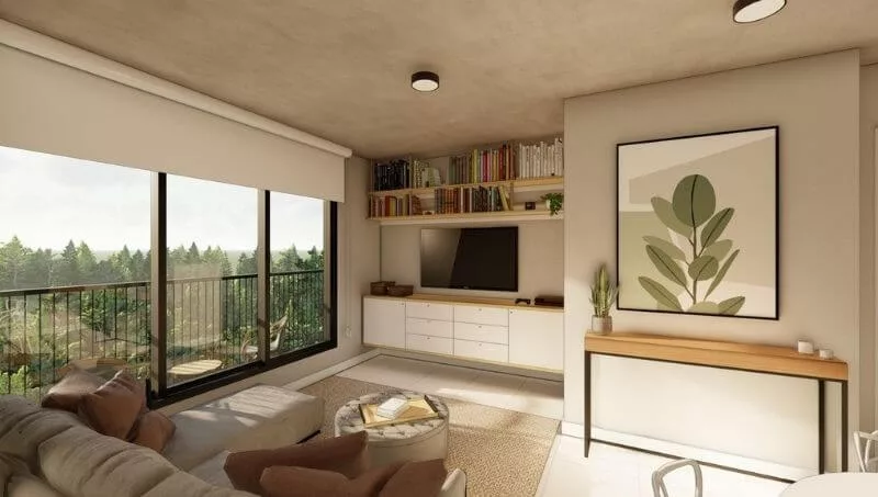 Los departamentos de dos dormitorios poseen 60 m2 cubiertos, sala comedor con cocina integrada, balcón de 13 m2 adicionales con parrilla, dormitorio en suite y dormitorio con baño familiar o social. Las unidades de un dormitorio están disponibles en dos tipologías. Ambas cuentan con sala y comedor con cocina integrada, dormitorio y un amplio baño compartimentado de acuerdo a la tipología seleccionada.