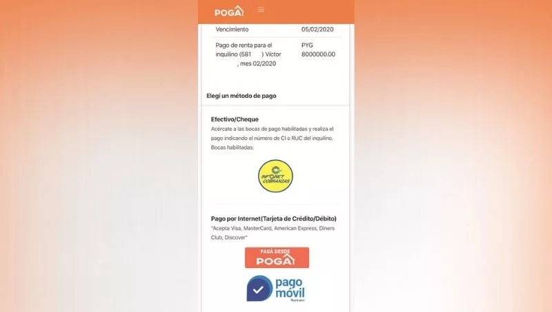 Aveiro explicó que al pagar con tarjeta de crédito de alguna forma uno ya se encuentra financiando su pago de alquiler, al menos difiriendo el pago para el siguiente mes. “Ahora estamos viendo que algunos bancos incluso están dejando el pago mínimo de sus tarjetas de crédito a cero guaraníes durante estos próximos meses. Teniendo en cuenta la realidad que estamos viviendo, Poga permite que puedas seguir cobrando si sos propietario o pagando si sos inquilino el alquiler, facilitando este proceso por medio de herramientas tecnológicas”, resaltó.