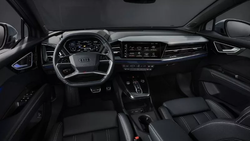 Los modelos Q4 e-tron aportan características de diseño que se destacan gracias a sus proporciones: parrilla cerrada de un solo bastidor, voladizos delanteros cortos, ruedas grandes con neumáticos escalonados y paneles sobresalientes y perfectamente esculpidos. Específicamente en el Audi Q4 Sportback e-tron resalta la línea del techo de estilo coupé especialmente bajo que termina en una parte trasera de diseño expresivo donde el spoiler se asienta profundamente en la ventana de dos partes.