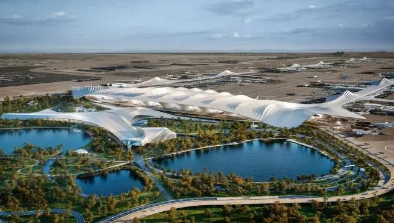 El nuevo aeropuerto, denominado Al Maktoum bajo la administración de Dubai Aviation Corporation, se estima que requerirá una inversión de AED 128.000 millones (US$ 35 billones). Una vez completado, será el aeropuerto más extenso del mundo, con una capacidad para atender a 260 millones de pasajeros anualmente, contando con 400 puertas de embarque y cinco pistas de aterrizaje.