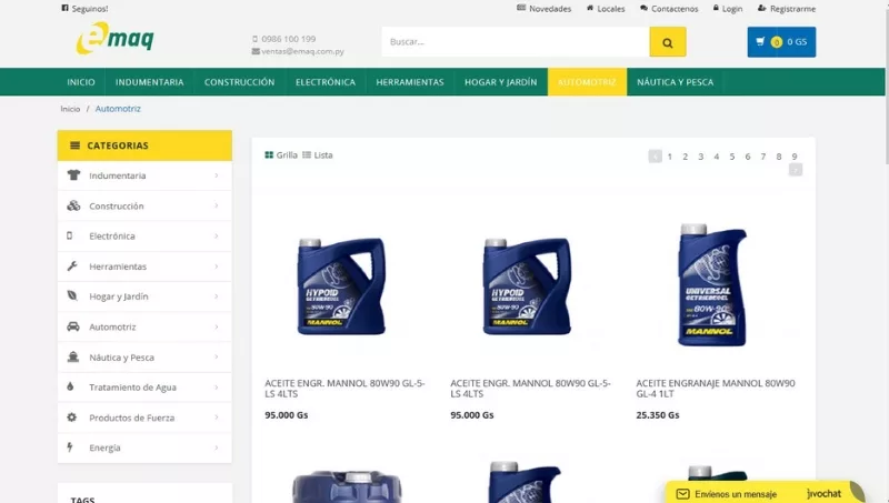 Actualmente el portal cuenta con una lista de productos disponibles relacionados a los rubros ferretero, construcción, hogar, jardín, energía y automotriz. Con respecto al último, disponen de artículos como lubricantes, aceites, baterías, minicompresores, entre otros. El cliente también puede encontrar accesorios como indumentarias de la firma de motocicletas Ducati y CFMoto, ya sea bolsos, camperas, kepis, remeras, cascos y guantes. Para el sector náutico, ofrecen los conocidos motores fuera de borda Genovo y Tohatsu.