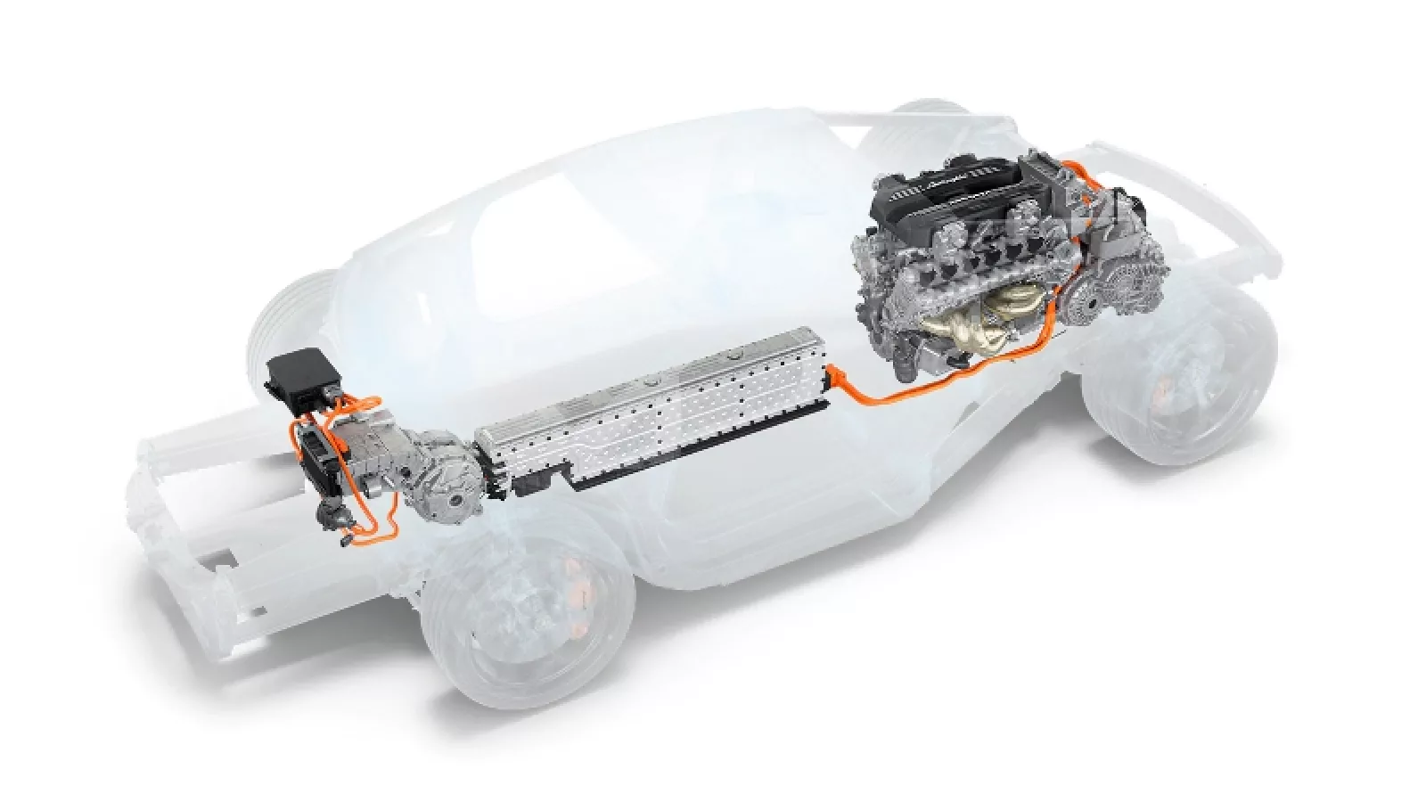 Cuenta con un tercer motor eléctrico sobre la caja de cambios de doble embrague de ocho velocidades que puede suministrar energía a las ruedas traseras. Por último, los dos motores eléctricos delanteros son unidades de flujo axial refrigeradas por aceite y ofrecen una relación peso/potencia de 18,5 kilogramos por cada 110 kW de cada motor.