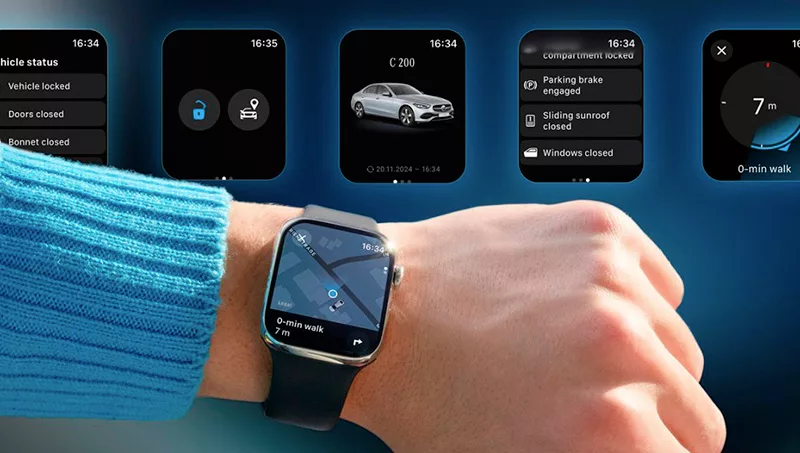 Mercedes-Benz se digitaliza, desarrollando una experiencia tecnológica para sus clientes con la introducción de las funciones de la Mercedes-Benz App en el Apple Watch. Ahora los propietarios pueden interactuar con sus vehículos sin tener que localizar su teléfono inteligente. Las funciones y características incluyen la capacidad de comprobar la autonomía del vehículo en función de su ubicación actual, así como el nivel de batería o de combustible.