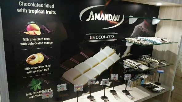 Los “Chocolates Amandau” fueron presentados en marzo de este año, convirtiéndose esta firma nacional en la primera empresa paraguaya en fabricar este producto a nivel local en la historia del país. En total, se fabrican en la planta de Luque más de 15 variedades del más fino chocolate, tanto para consumo personal como para uso industrial para reposterías y panaderías, y para el canal gastronómico (hoteles y restaurantes).