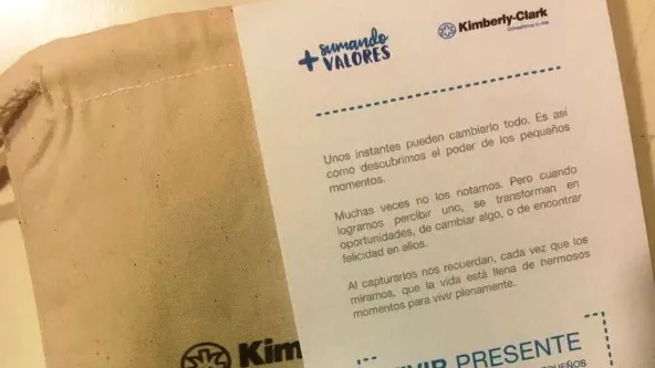 “Sumando Valores” propone un Kit “Viví Presente”: una caja llena de marcos que simulan a los de las fotos Polaroid, con distintas frases relacionadas al concepto Viví Presente y que fueron enviados a referentes de nuestro país.